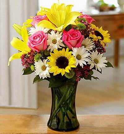 2 Sunflowers, 3 Lilies, 4 Roses, 6 Daisies and fillers.