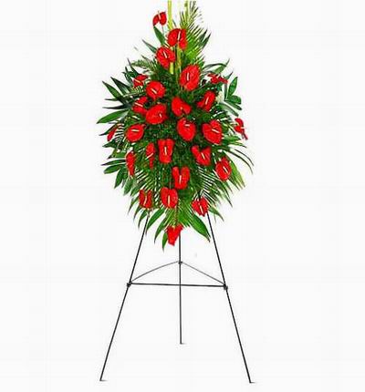 Flower Stand of Anthuriums with large leaves (Substitutions may apply if a flower item is unavailable)